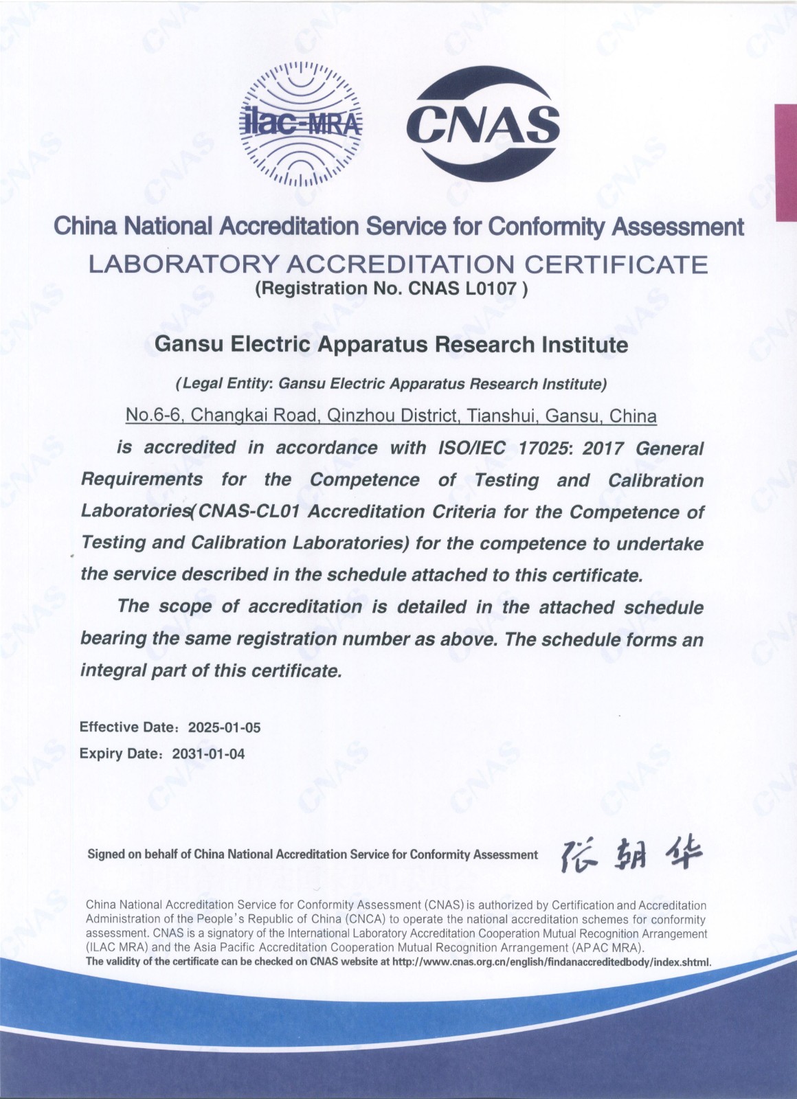 國(guó)家電力測(cè)量用互感器型式評(píng)價(jià)實(shí)驗(yàn)室(甘肅)